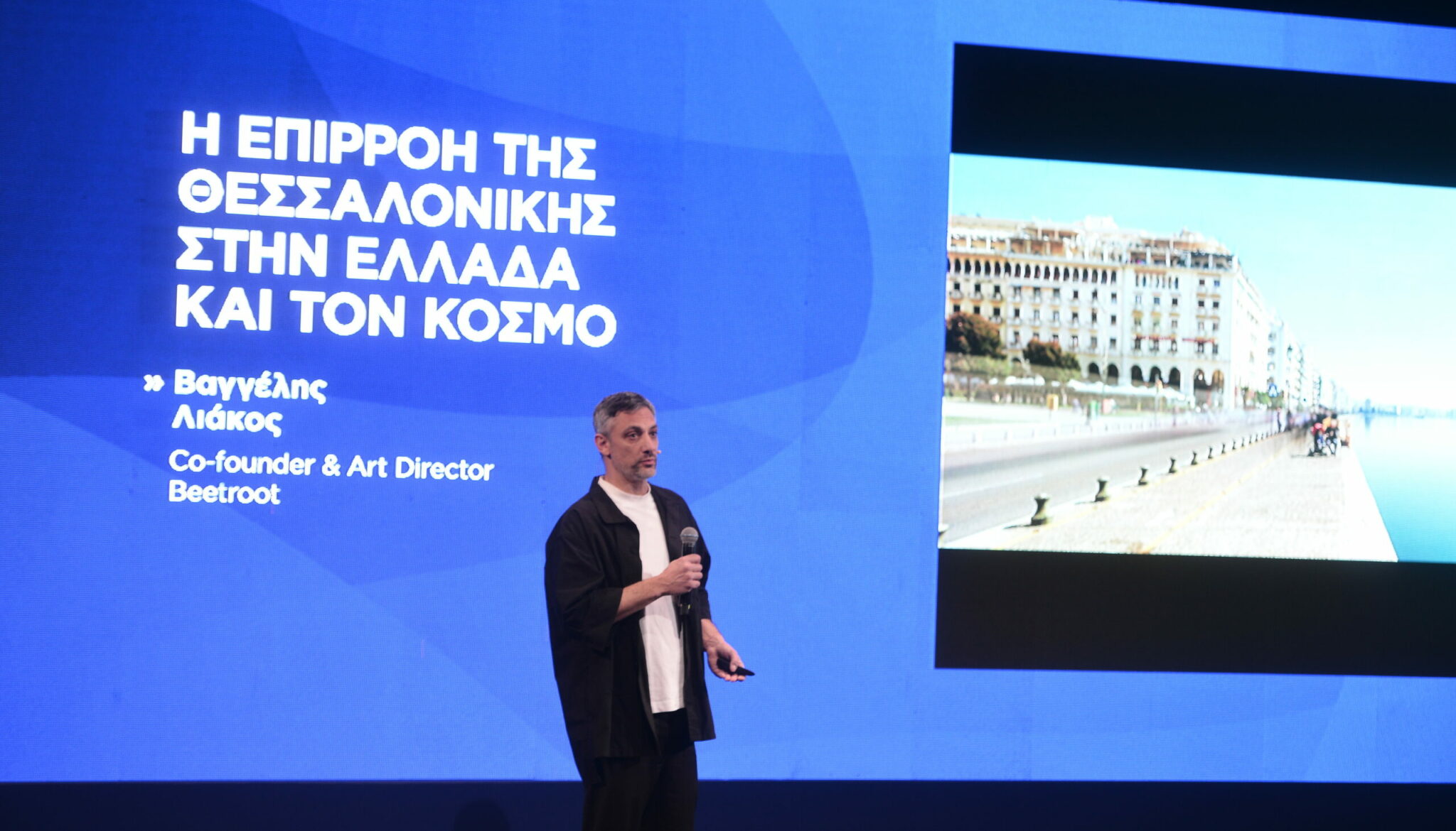 Στο πλαίσιο του δεύτερου μεγάλου συνεδρίου του Travel.gr, που διοργανώθηκε στη Θεσσαλονίκη με θέμα “Η Θεσσαλονίκη στον διεθνή τουριστικό χάρτη”, ο συνιδρυτής και καλλιτεχνικός διευθυντής της Beetroot Design Group, Βαγγέλης Λιάκος, παρουσίασε μια πρωτότυπη ομιλία για τη μεγάλη επιρροή τους στη Θεσσαλονίκη, την Ελλάδα και τον υπόλοιπο κόσμο. Ο κ. Λιάκος, καταγόμενος από τη Θεσσαλονίκη, συνέχισε να περιγράφει την εντυπωσιακή πορεία των Beetroot, μιας καλλιτεχνικής ομάδας που έχει ξεπεράσει κατά πολύ τα όρια της πόλης και της Ελλάδας.